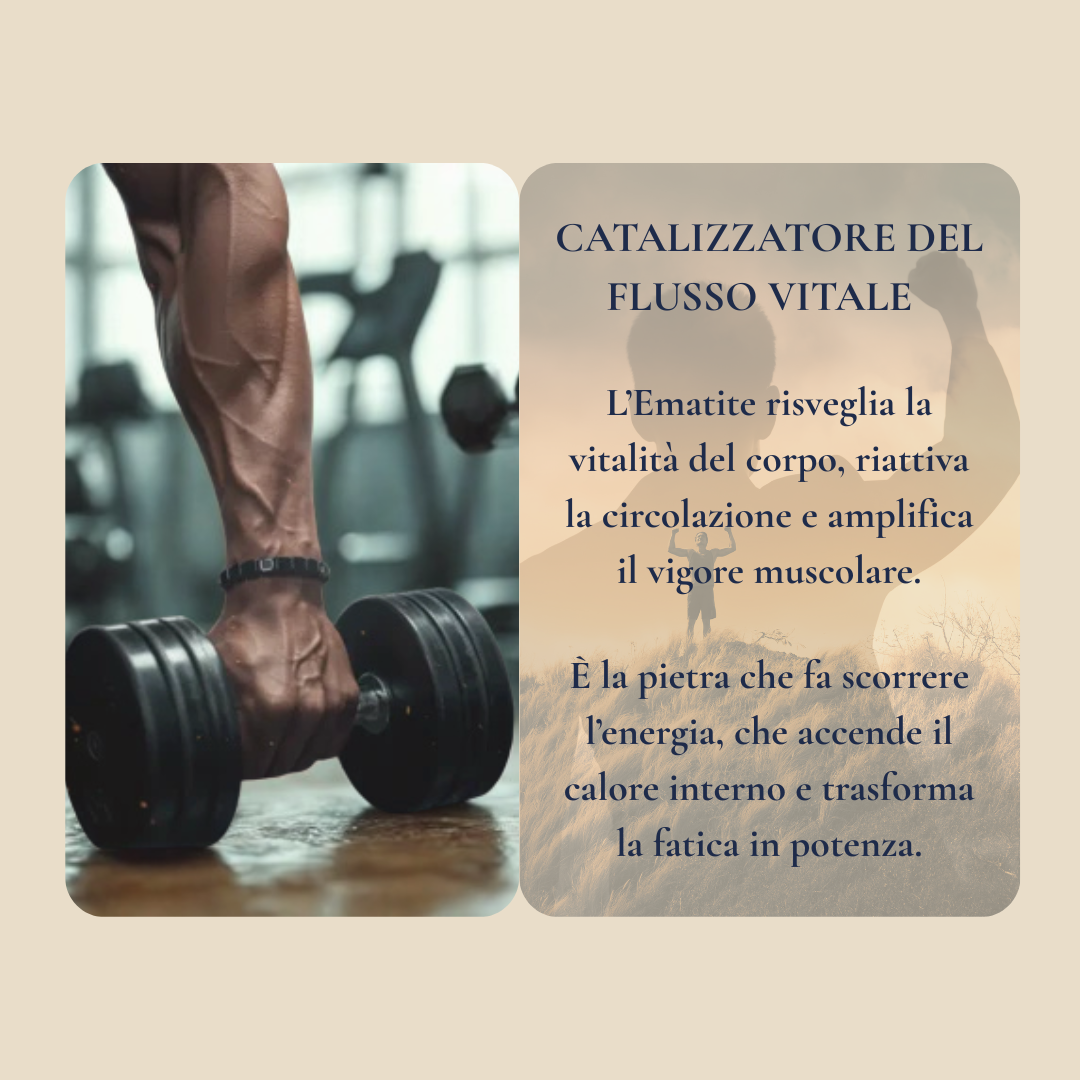 L’Ematite sostiene il corpo e la mente nei momenti di sforzo, donando una forza calma e costante. Aiuta a trasformare la tensione in potenza controllata e presenza stabile.